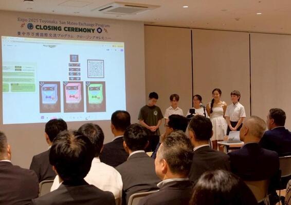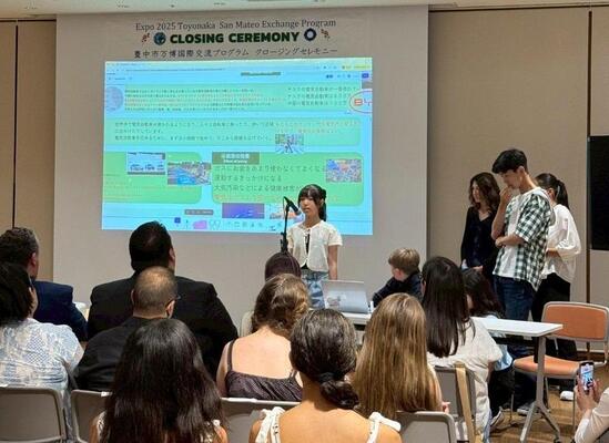 豊中市、サンマテオ市共に公募で選ばれた学生たちが参加する国際交流プログラム。5月にスタートしたオンライン交流から2か月半、いよいよ対面交流がスタートしました。サンマテオ市から6人、豊中市から9人の学生が環境学習に取り組みながら交流します。対面交流では豊中市内の学校、施設を訪問するほか、大阪関西万博の会場も見学しました。7月16日から21日まで豊中でともに過ごした6日間の様子をぜひご覧ください。