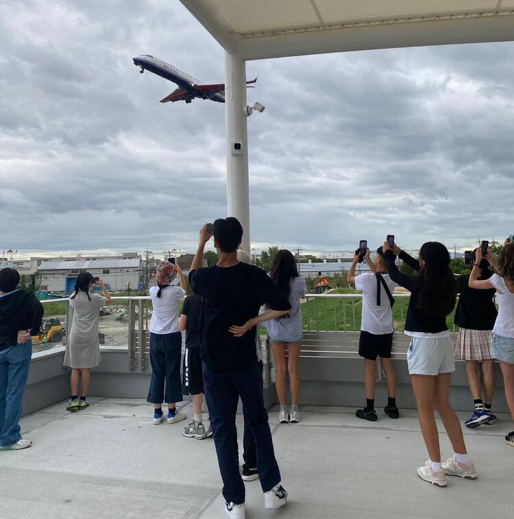 迫力のある着陸シーンを見ながら「ここからサンマテオに行けたらいいのに」とコメントをする学生たちも。