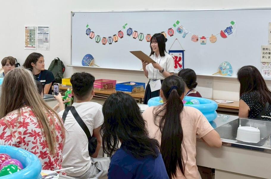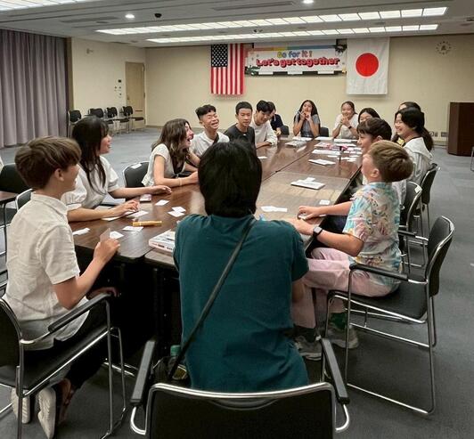 姉妹都市協会有志と親善使節企画のユース交流会は楽しさ満載。豊中市姉妹都市親善使節の先輩たちが企画してくれた、豊中・サンマテオクイズ、能舞の観賞では日本の伝統文化に触れ、夏祭り体験では綿菓子つくり、ヨーヨー釣りで楽しみました。学習プログラムの勉強から少し離れて、和気あいあいの参加者たち。