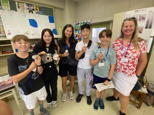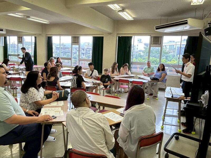 サンマテオ市長と訪問団で参加した学校体験では、この日のために作りこんだ内容の授業を実施していただき、有意義な時間になりました。校長先生からの学校紹介では、この規模で豊中市で一番小さい学校だなんて!と驚いた様子。学校内にある体育館、グラウンド、さらにスイミングプールがあることを知ると、「ここに通いたい」「あの上靴ほしい」といった声があがっていました。細部までこだわってみんなが楽しめる授業の内容にしてくださった豊中市立第十八中学校の先生方、気持ちよく迎えてくださった皆さんありがとうございました。