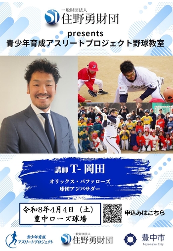 現役時代には本塁打王やベストナイン等のタイトルを獲得された元オリックス・バファローズのT-岡田さんによる野球教室を開催します。