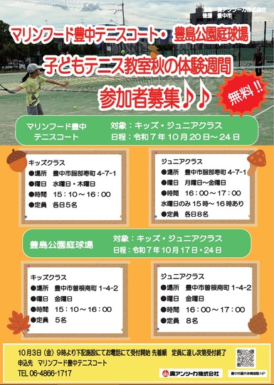 マリンフード豊中テニスコート 電話:06-4866-1717。先着順