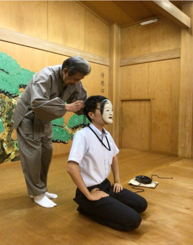 ご厚意で能面を着けて能舞台に上がる貴重な体験もさせていただき、実際に能面を着けることで、その魅力をより深く理解できたと感じています。