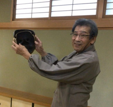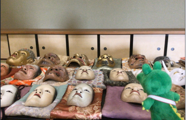 体験教室では能面をつけることができる