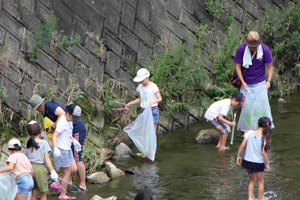 「アクアユートピア」というイベントです。このイベントは誰でも参加が可能で、千里川の清掃や自然学習を通じて、自然の大切さをこどもたちに伝えるものです。
