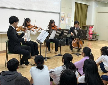 演奏活動では、音楽に関心があるとは限らない相手に向けて演奏や指導を行います。