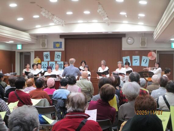 「蛍池公民館まつり」は、公民館で活動している登録グループの皆さんが、日頃の活動の発表・実演・作品展示を行い、交流を深めるイベントです。謡曲、コーラス、音楽演奏、絵画展示、ダンス、体操など、様々な出し物があり、非常に盛り上がっていました。