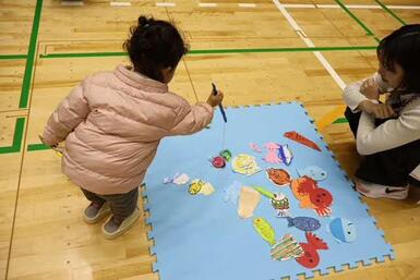 「みんなあつまれわくわくランド」は、行政をはじめとする子育て支援を行うさまざまな機関・団体が子育て支援について発信し、地域全体で子育て家庭を支援、応援することを目的として開催されているイベントです。おはなし会やさかなつり、トランポリンや段ボール迷路など、こどもが夢中になれるさまざまな遊びや、子ども服のリユース、身体計測など、ご家族の方にとっても魅力的なブースが沢山あります。当日は多くの方々にご来場いただき、非常に活気のある一日となりました。