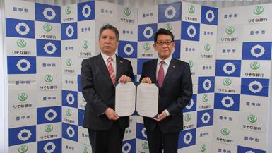 出席者:りそな銀行 取締役副社長兼執行役員 南 和利、豊中市長 長内 繁樹(敬称略)