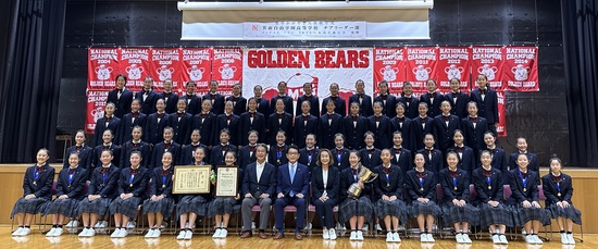 令和7年8月28日から8月31日に開催された「JAPAN CUP2025日本選手権大会」で、箕面自由学園高等学校チアリーダー部「GOLDEN BEARS(ゴールデンベアーズ)」が自由演技競技DIVISION1 高等学校部門で優勝され、市民の皆さんに、夢と明るい希望と感動を与えてくれましたので、長内市長から豊中かがやき大賞を贈呈いたしました。