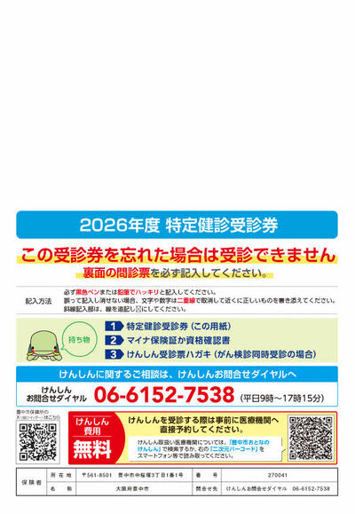 R8年度(2026年度)特定健診受診券裏面の見本