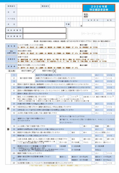 R8年度(2026年度)特定健診受診券表面の見本