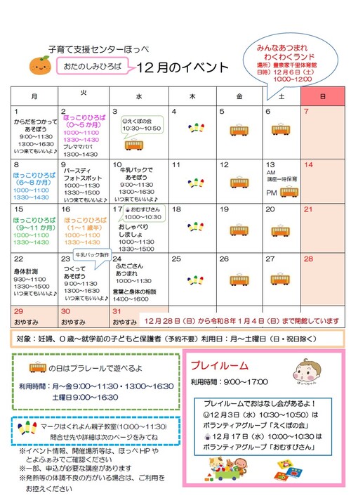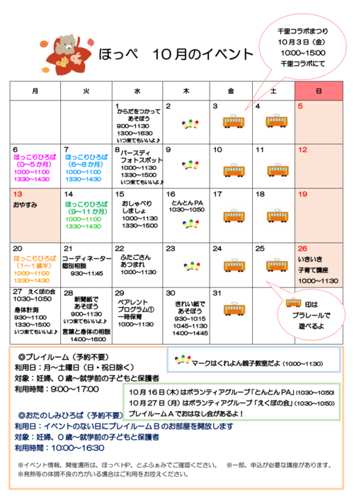 ●プレイルーム利用時間:午前9時から午後5時(申込不要)