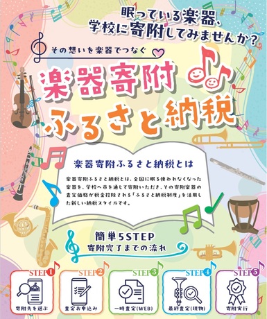 受付は、こちらの「楽器寄附ふるさと納税」のサイトへ(外部サイト)