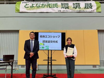平成30年度(2018年度)は、「とよなか市民環境展2018」において、優良エコショップ認定証交付式を行いました