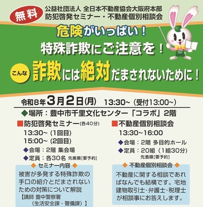 豊中警察署による無料の防犯啓発セミナーを開催します。