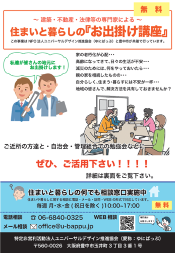 住まいと暮らしのお出掛け講座はNPO法人ユニバーサルデザイン推進協会と豊中市の共催事業として行っています。