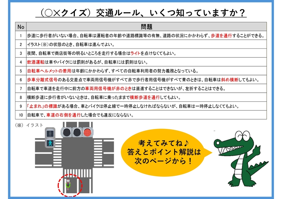 交通ルールなどがわかりやすく集約されていますので、交通ルールの確認や学習にぜひご活用ください。