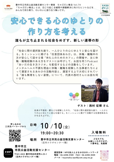 ちゃぶだい集会「安心できる心のゆとりの作り方を考える -誰もが立ち止まれる社会をめざす新しい連帯の形-」のチラシ(PDF:551KB)