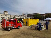 防災コーナー:消防車展示、制服着用、煙体験ハウス、防災啓発展示など