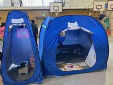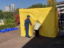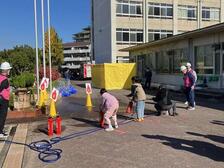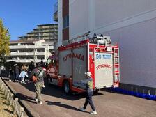 水消火器体験、煙体験、消防車展示、防災用テント展示