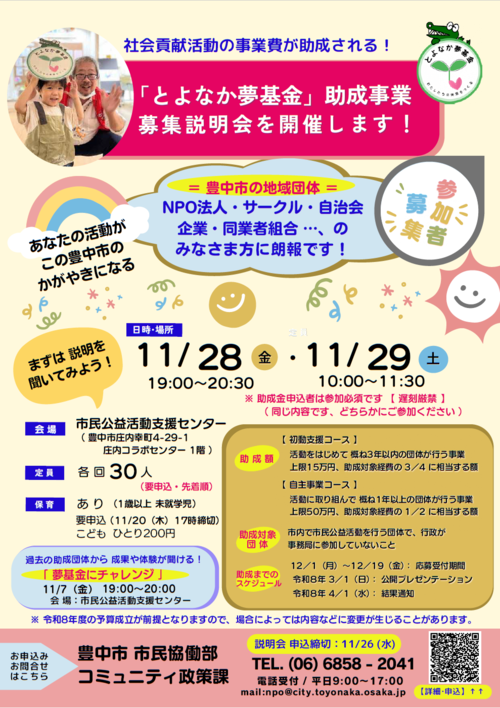 - 令和7年(2025年)11月7日(金曜)・・・とよなか夢基金にチャレンジ(応募に関する相談会)