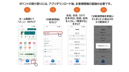 氏名・生年月日・住所などの利用者情報を登録しておくと、申込不要でポイントが自動で届きます。