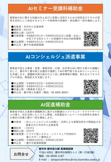 問合せ先:本制度に関するお問合せは産業振興課(06-6858-2187)まで