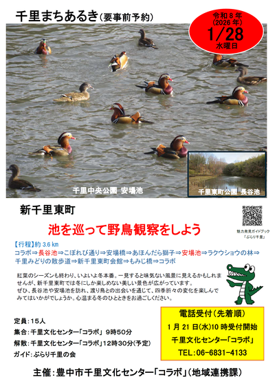千里まちあるき「池を巡って野鳥観察をしよう」(1月28日)【要申込】