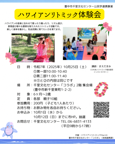 【千里文化センター公民学連携事業】ハワイアンリトミック体験会(10月25日)【要申込】