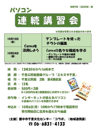 パソコン連続講習会【要申込】(10月10日・10月24日)
