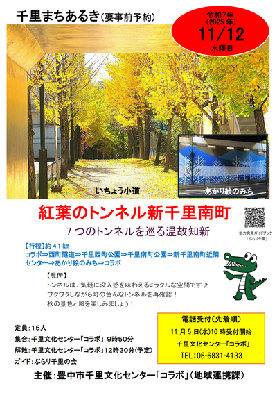 千里まちあるき「紅葉のトンネル新千里南町」(11月12日)【要申込】