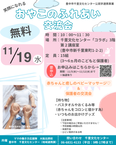 【千里文化センター公民学連携事業】おやこのふれあい交流会(11月19日)【要申込】