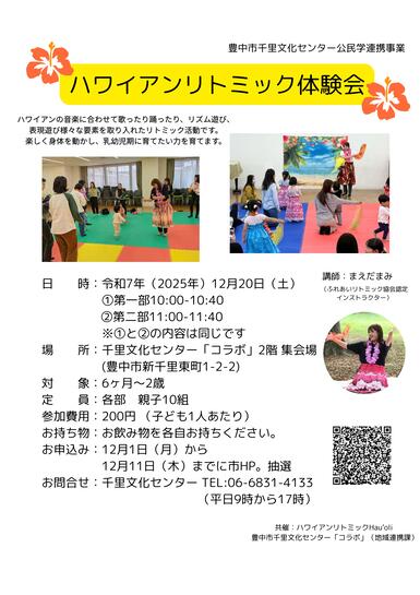 【千里文化センター公民学連携事業】ハワイアンリトミック体験会(12月20日)【要申込】