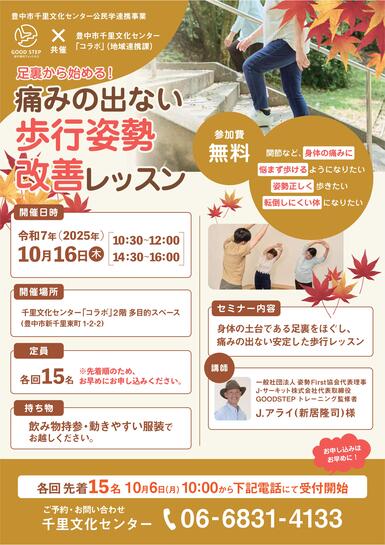 【千里文化センター公民学連携事業】足裏から始める!痛みの出ない歩行姿勢改善レッスン(10月16日)【要申込】