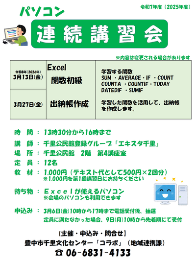 パソコン連続講習会(3月13日初回)【要申込】