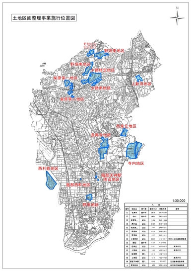 下記の「土地区画整理事業等施行位置図」より、該当する土地区画整理事業等の地区をご確認ください。