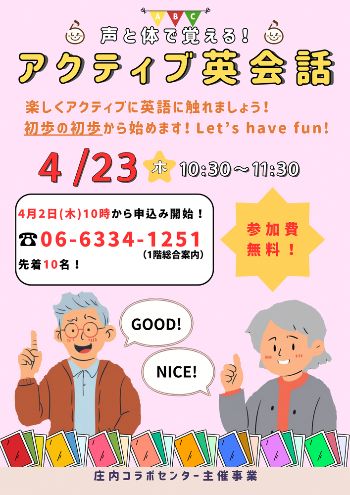 楽しくアクティブに英語に触れましょう!初歩の初歩から始めます!Let's have fun!