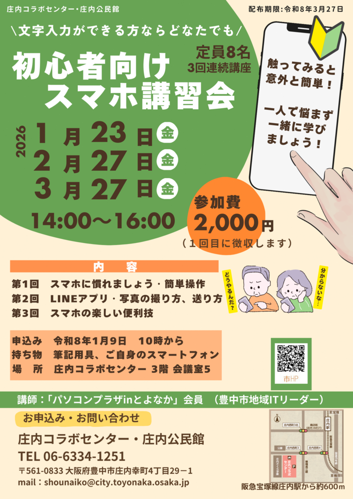 | 第1回 | 1月23日 | スマホに慣れましょう・簡単操作 |