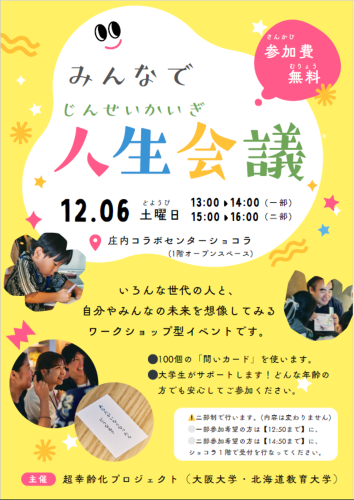 いろんな世代の人と、自分やみんなの未来を想像してみるワークショップ型イベントです。(2部制)