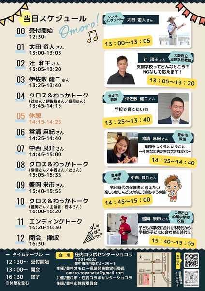 | 03 | 13:25~13:40 | 伊佐敷 健二さん (豊中市教諭) |