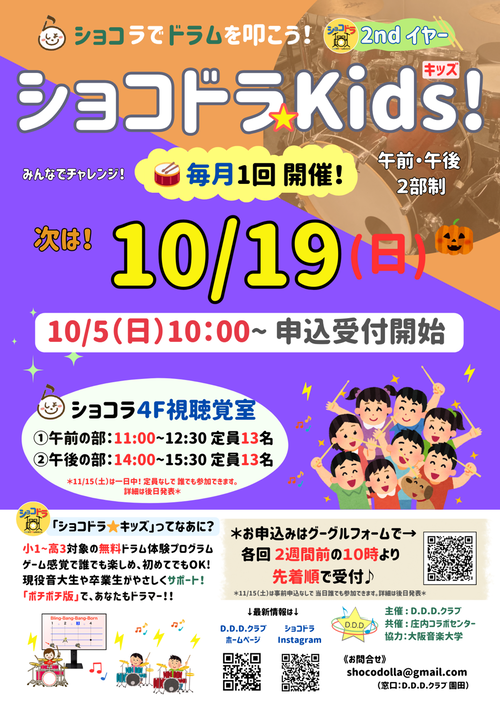 ショコラでドラムを叩こう!ショコドラKids!(毎月1回)