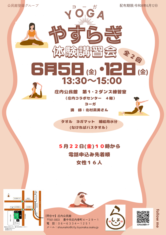 ヨーガやすらぎ 体験講習会(6月5日・6月12日)