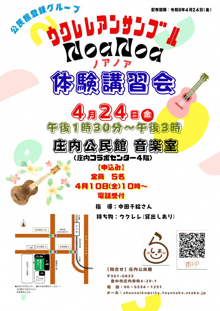 庄内公民館登録グループ「ウクレレアンサンブルNoaNoa」体験講習会(4月24日)