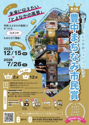 また、例年、身近な景観の再発見や共有を目的に開催しているフォトコンテストについて、周年事業の「豊中まちなみ市民賞」として特別に開催します。