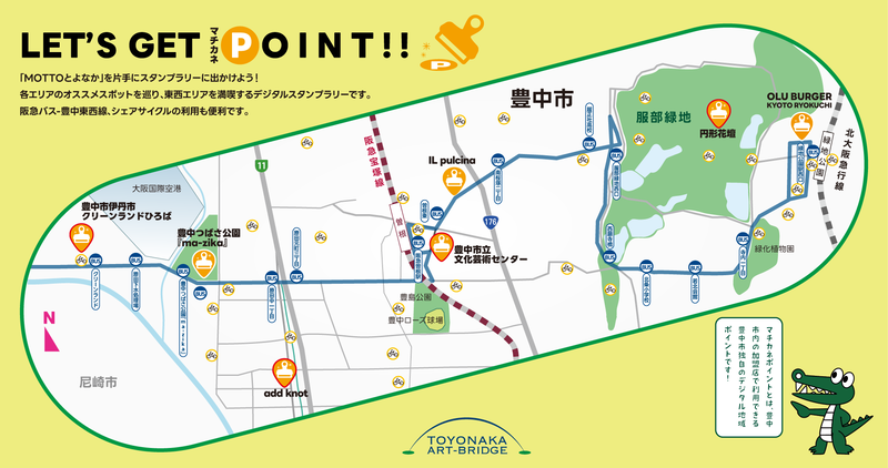 各エリアのスポット、オススメの飲食店、アート作品などを巡る、豊中東西エリアを満喫するスタンプラリーです♪