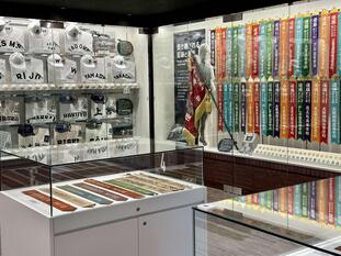 高校野球の歴史を伝えるパネルや、全国の甲子園出場校のサイン、ユニフォーム、大阪府大会のペナントなど