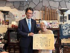 本市では135人の100歳長寿と、金婚夫妻175組の皆さんに、祝意状と記念品をお渡ししました。