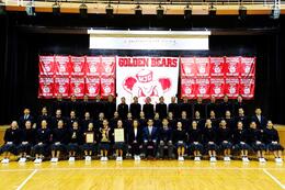 令和8年1月に開催された第36回全日本高等学校チアリーディング選手権大会で箕面自由学園高等学校チアリーダー部「ゴールデンベアーズ」が総合優勝、同日開催された第12回全日本中学校チアリーディング選手権大会で同学園中学校チアリーダー部「ジュニアベアーズ」が優勝され、その快挙を賞し、豊中かがやき大賞を贈呈しました。