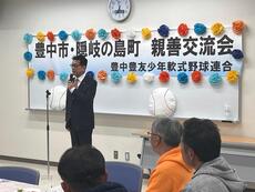 第20回豊中市・隠岐の島町学童野球親善交流の歓迎交流会が開催され、隠岐の島町から来豊した選手たちを温かく迎えました。
